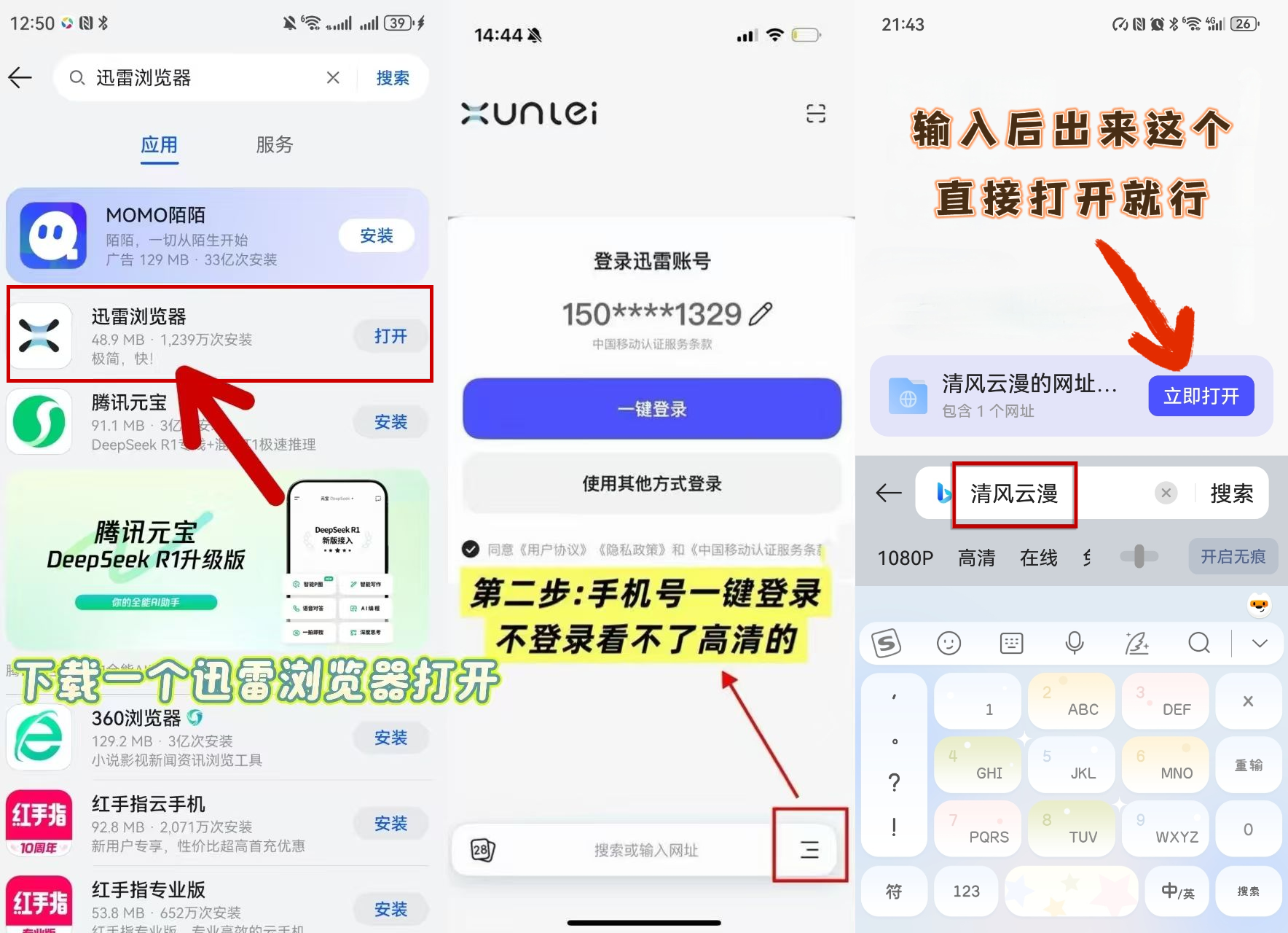 2.用迅雷浏览器注册登录复制 这个红线的: 清风云漫 会自动跳转出来!!!!
